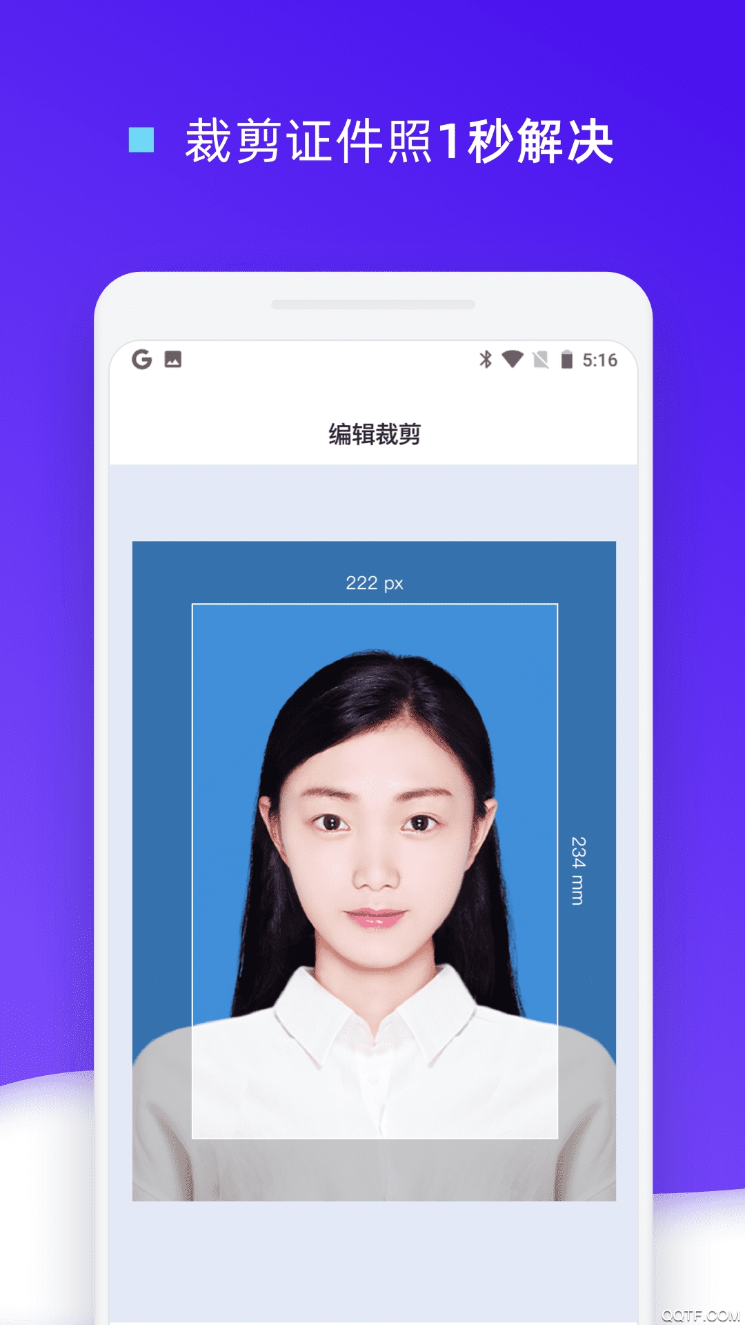 证件照裁剪app,很好理解的证件照裁剪软件,可以使证件照变成自己想要的尺寸效果,这里的尺寸有很多种,大家可以随意裁剪到自己想要的尺寸,可以将证件照多余的地方裁去,看起来更加美观,使用起来也非常方便,一秒钟解决,快来下载使用吧。