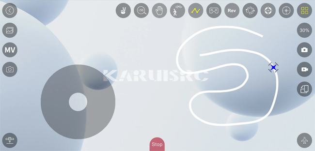 用户可以通过手机屏幕上的虚拟摇杆或手势操作,控制无人机的飞行方向、高度和速度。
