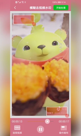 3、选中水印部分之后,点击底端的“处理”按钮,水印就会被直接去除掉了,这时候点击右上角按钮保存即可。