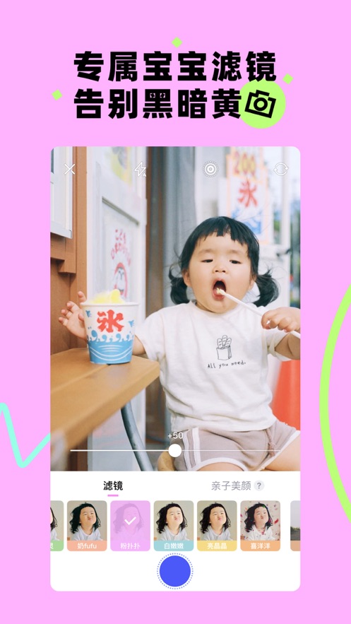 4.专属宝宝滤镜,告别黑暗黄!智能的亲子美颜模式,妈妈和宝宝合照时分开美颜,妈妈美美哒,宝宝自然不变形。
