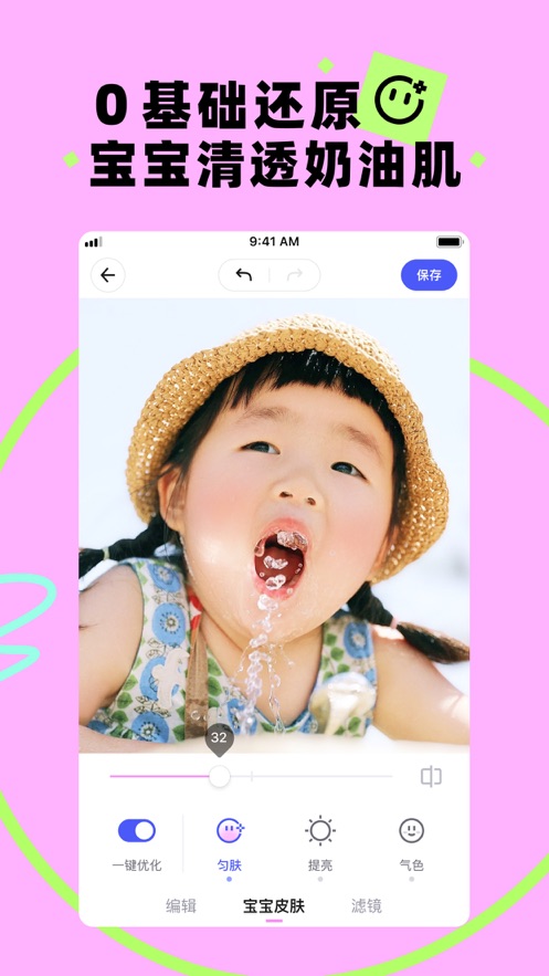 2.手机修图神器,分分钟拯救废片!0基础还原宝宝清透奶油肌,增加宝宝气色,更有海量滤镜任你选择。在家也能轻松拍大片~