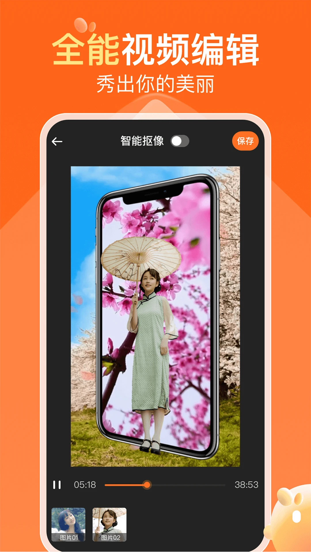 美化自拍/他拍视频:通过智能美颜和趣味贴纸,让出镜的自己或朋友更上镜,视频效果更佳。