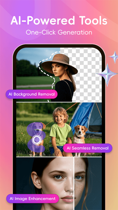 强大AI编辑套件:提供AI物体移除、一键抠图、风格转换和图像增强等功能,让用户即使是新手也能轻松制作出专业级的效果。