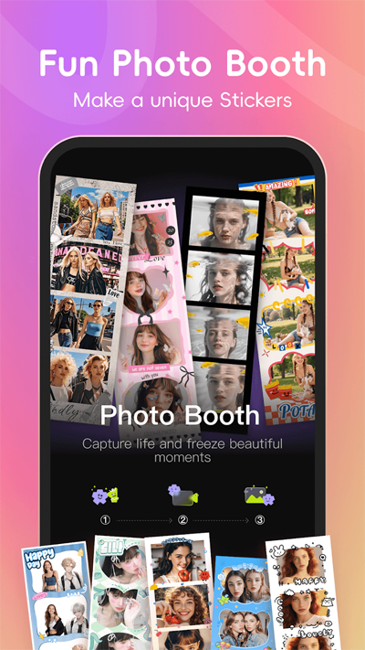 海量免费素材:内置数千款免费模板、贴纸和特效,特别是在“趣味拍照屋”和“DIY动态壁纸大师”功能中,为用户提供了无限的创意空间。