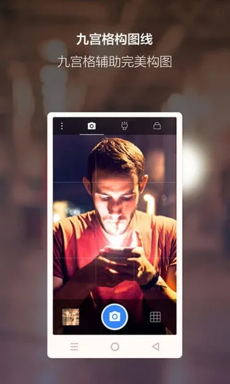 3、一键添加九宫格,辅助拍照更完美,晚上也能拍出高清美照;