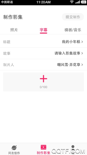 小年糕音乐制作相册最新版是一款专业的影集制作软件,可以将你的照片快速制成超酷视频,制作步骤非常简单,新手也能学会,大家只需要上传好你的标题、故事内容、制片人、照片即可制作,最多可以上传100张照片哦,这里还有其他网友的影集供大家参考,快来下载吧!
