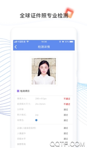 支持各类考试报名到各国签证在内的近500多种证件照规格,32个检测项,免费进行证件照合规性检测:
