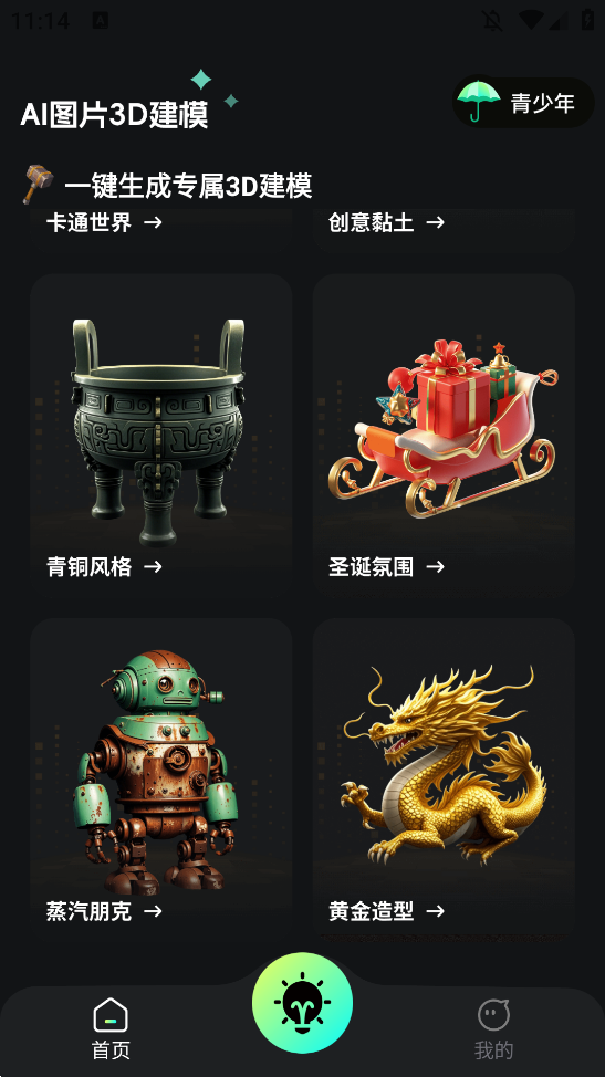 3.图片转3D:点击“图片变3D”,选择单张或多张照片,即可智能生成3D模型。