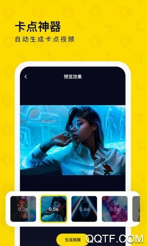 1、新一代的卡点神器,这里有大量的预设电影质感的精美滤镜和音乐转场,一键生成专属卡点视频;