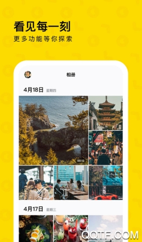 4、浏览相册很方便,时光轴滚动浏览自动播放视频,动起来的相册让记忆更鲜活,下载一刻相册,探索更多精彩。