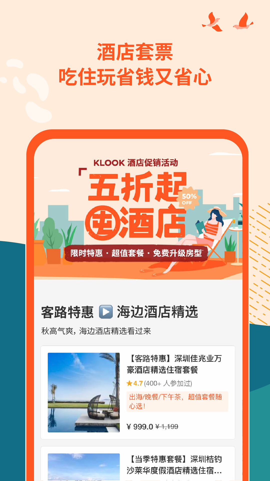 客路旅行(KLOOK)是一款专注于旅行体验预订服务平台,由深圳市客路网络科技精心打造推出。该软件平台为用户提供世界各地上万种值得尝试的目的地玩法,并以官方专注旅游出行服务领域多年的经验积累与完善服务体系为基础,高效聚合来自全球各个国家地区100+热门旅游目的地,精心打造15,000+优质旅行活动,全面提供景点门票、一日游、户外活动、机场接送、交通票券、wifi上网卡等专业出游服务。除此之外,该软件还能为用户提供世界各地上万种值得尝试的目的地玩法,帮助旅行者发掘全球最棒的景点、行程与难忘的当地体验。喜欢旅游出行爱好者不要错过了,快来下载试试吧。