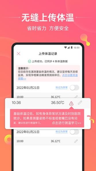 1. 每天早上使用孕橙测量基础体温,记录在APP中;
