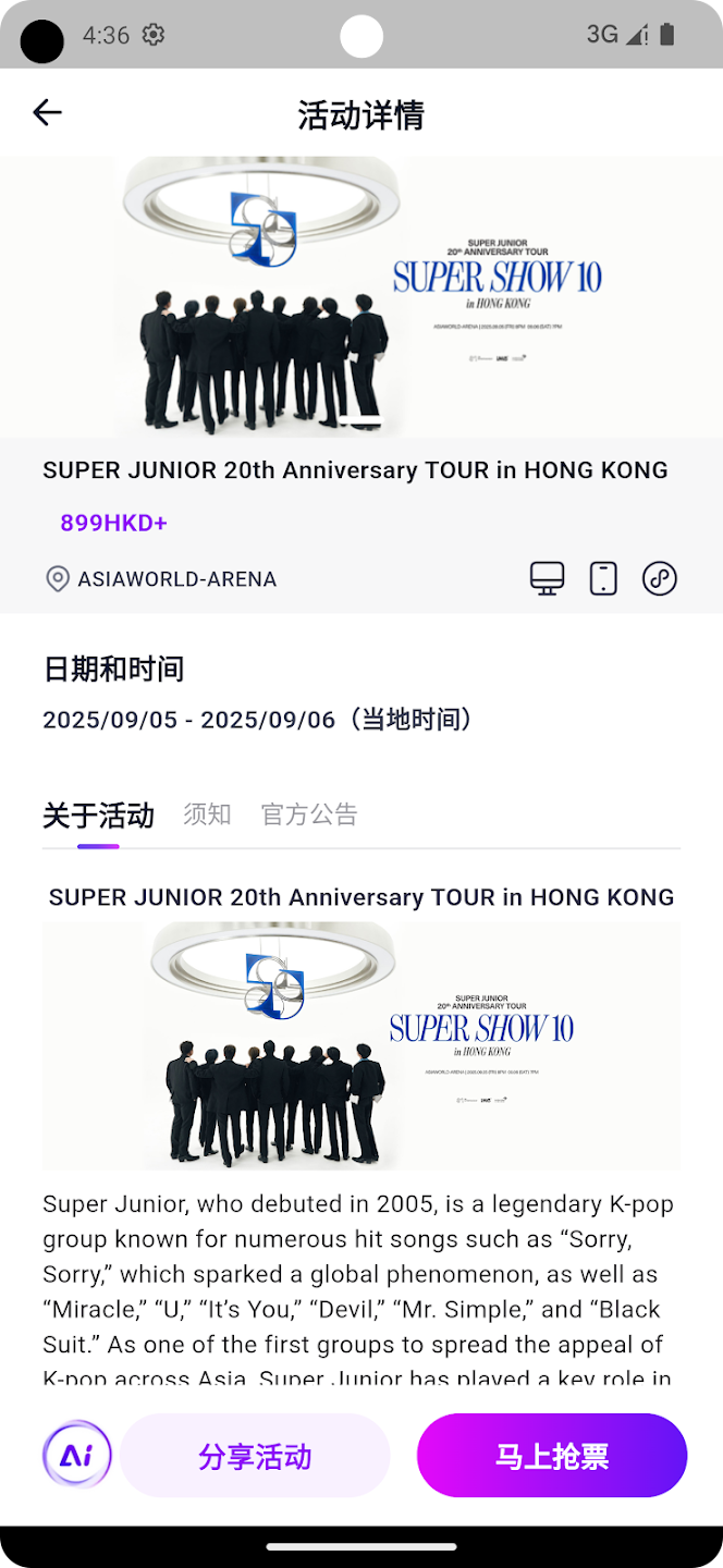 官方周边销售:App 不仅提供门票,还支持线上预购官方正品周边。粉丝可以提前在App上购买心仪的周边产品,并在活动现场直接线下提货,避免了抢购和携带不便的烦恼。