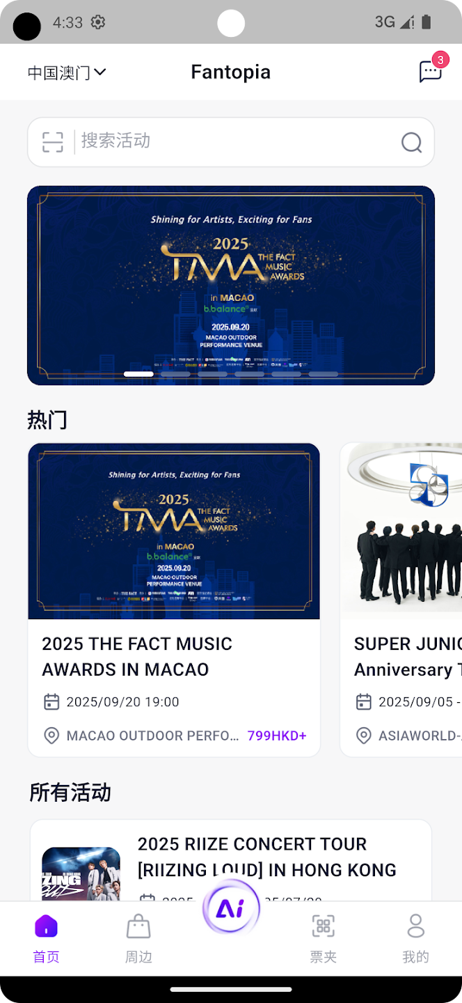 活动门票服务:Fantopia Ticketing 提供各类活动的官方门票销售,让粉丝能够方便快捷地获取亲临现场的资格。