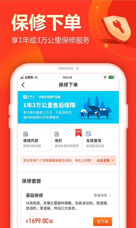 3、延保;1年3万公里售后保障!12大系统保障(发动机机械系统、发动机控制系统、发动机进排气系统、差速器……),不同车辆车况、不同延保套餐随意搭配,开放心车。