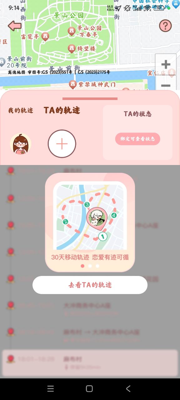 【时刻守护】实时查找伴侣位置,也可查看30天内足迹.停留时长和出行方式,保护伴侣安全,减少关心带来的负担。