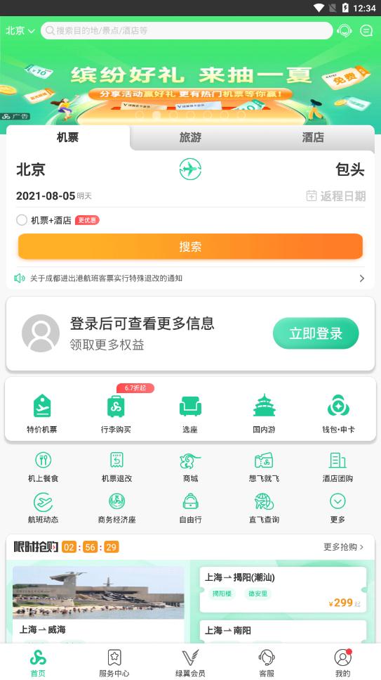 春秋航空app官方版是一个订飞机票的软件,这里有超多的特价机票,最低的价格助你飞往你想去的地方,在线订票、查询航班动态、在线值机、酒店预订等等功能一应俱全,需要的朋友赶紧来下载用起来吧。