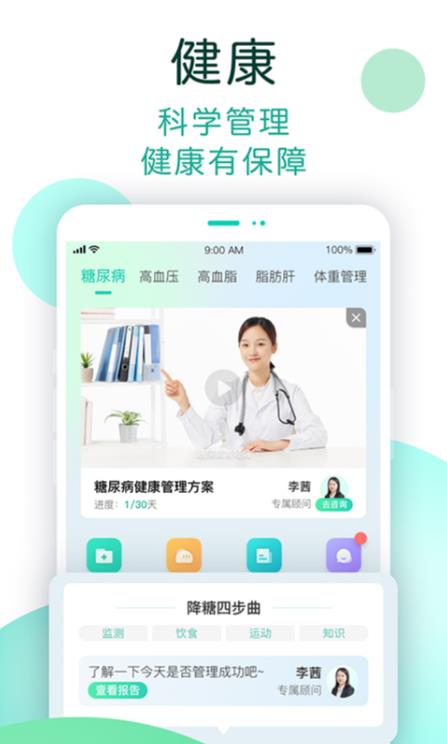3、在首页可以根据自己的健康状态查看健康建议和健康管理信息;