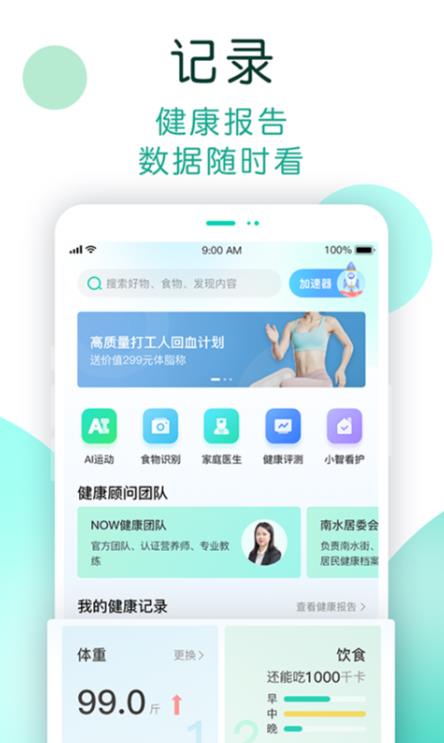 NOW健康app作为您减脂健身期间的最佳“管家”,其不仅具有完整的膳食评估系统,能帮您精准把控减脂期所摄入的热量,还有专业的营养师为您合理规划每日饮食;另外还有专业教练一对一教学,为您量身打造最适合您的健身计划,让您彻底体验到快乐燃脂,轻松塑形。健康生活,就是NOW!