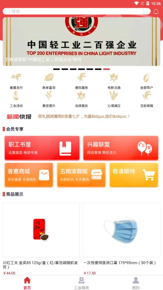 五粮液家园app官方版是专为五粮液集团员工打造的工会服务软件,员工可以在app内享受超多的服务,法律咨询、素质提升、互助保障、账单查询、电影兑换等等,集团最新的新闻资讯也可以及时知道,随时了解工会动态,参加工会活动,职工书屋内可以阅读很多书籍,海量商品自由购,需要的朋友赶紧来下载试试吧。