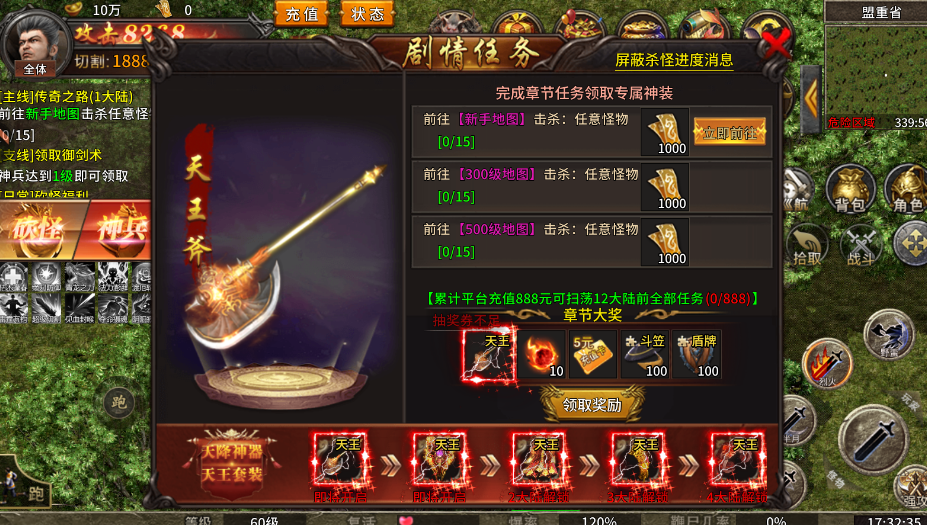 在打怪升级过程中同步收集套装部件,集齐指定套装即可领取充值卡、专属装备、稀有神技等丰厚奖励,助力战力飞跃。