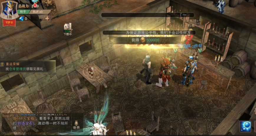 资源优先分配:钻石优先用于购买经验药水和提升VIP等级(增加副本及快速战斗次数)。前期装备可在市场购买红色武器/粉色套装过渡。