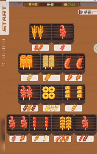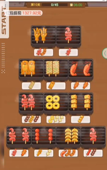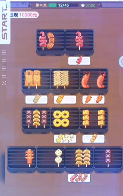 《烤串大师》是一款以烧烤为主题的合成消除类休闲游戏。玩家通过将相同食材(如牛肉块、鸡翅、青椒等)拖拽至相邻位置进行三连或区域合成,逐步升级为更高阶的烤串组合(如“秘制羊肉串”“豪华海鲜拼盘”),从而完成关卡目标。游戏设有任务系统,包括限时挑战、订单交付、食材收集等模式。达成目标可解锁新食材、烤炉皮肤及辅助道具(如“自动翻面”“火焰加速”),提升通关效率。美术采用明亮卡通风格,搭配滋滋作响的音效与烟火缭绕的背景,营造出夜市烧烤摊的热闹氛围。操作简单但策略性渐强,适合碎片化娱乐与轻度解压。