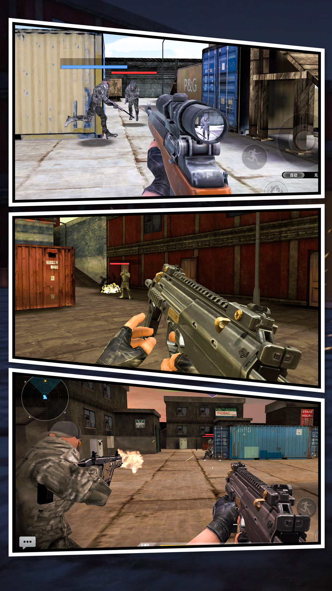 题材与画面沉浸:紧扣现实反恐主题,搭配细腻高清画质和逼真战场音效,不同关卡的城市、沙漠等场景各具特色,代入感拉满。