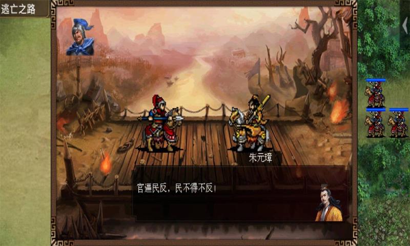 《明朝开国英烈》是一款以元末明初的朱元璋为主角,辅以常遇春、徐达等不世名将,匡复炎汉、一统天下的slg战棋策略游戏。将为玩家们带来一场波澜壮阔的争霸冒险!纵横欧亚的蒙古骑兵如何折戟中原?一代枭雄陈友谅因何而败?不过一介乞丐的朱元璋又如何缔造了一个煌煌大明,一切尽在明朝开国英烈!《明朝开国英烈传》亦是一款有宠物系统的同人战棋游戏,玩家们能带着你的宠物征战沙场。