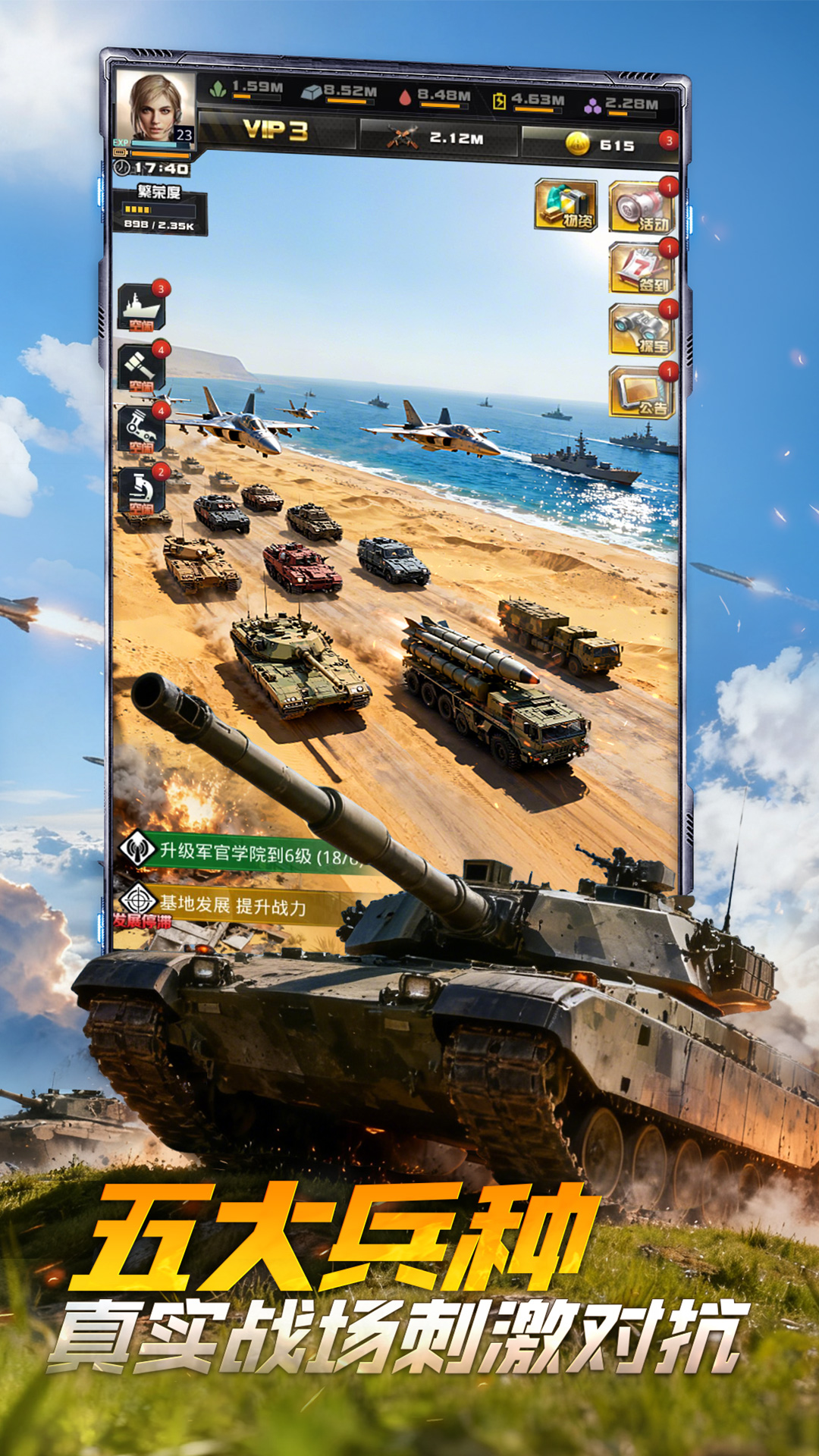 重装坦克组建:玩家可以从零开始组建和培养专属的坦克军团。