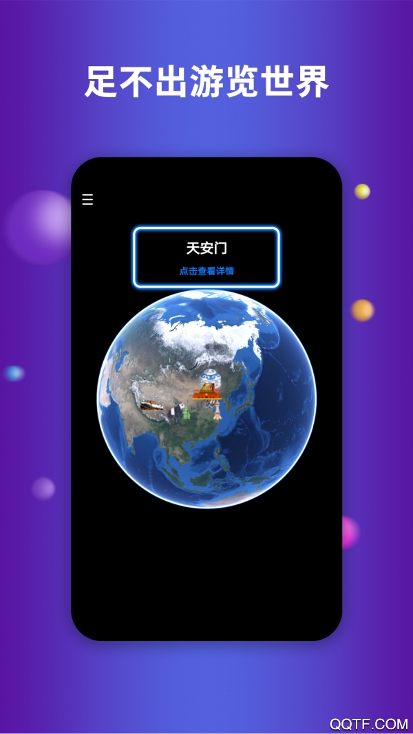 4、热门标识:在地球上查看各地的科普特点,例如大熊猫、布达拉宫、天津快板等;