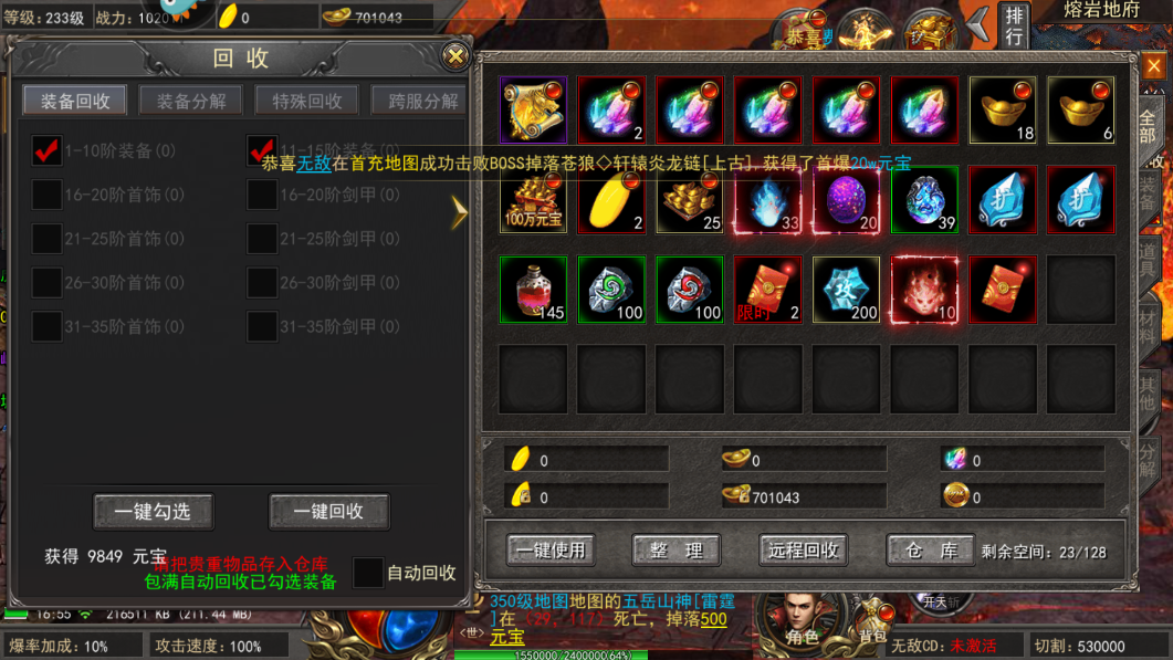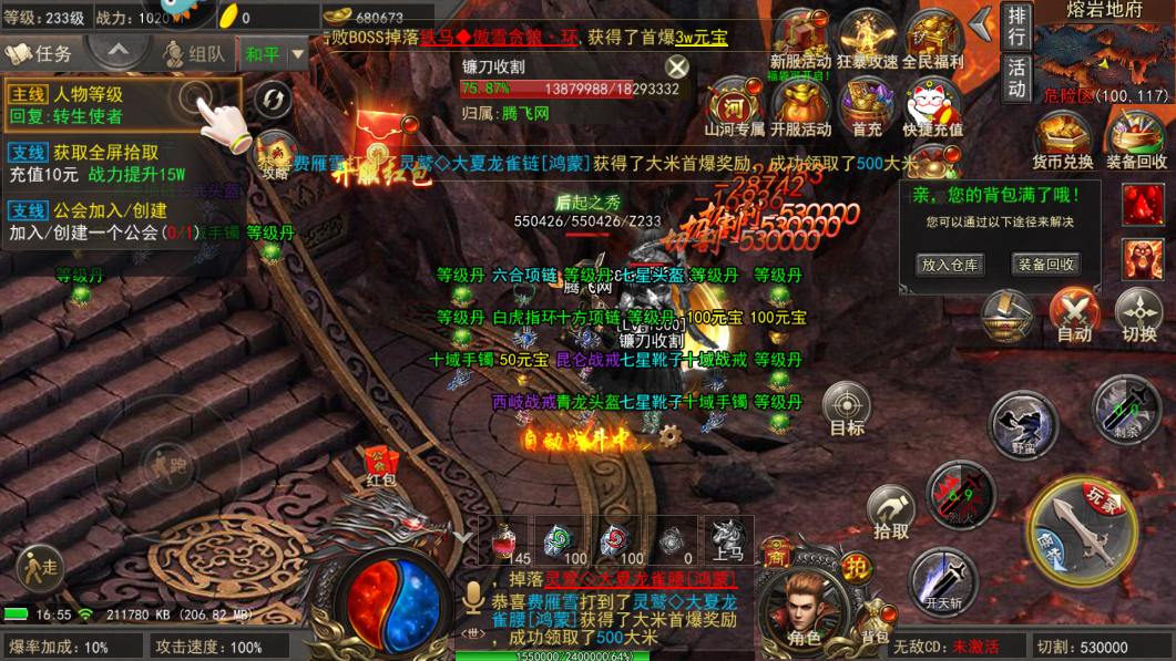 山河传奇无限刀超高的装备爆率,平民玩家也能霸服。