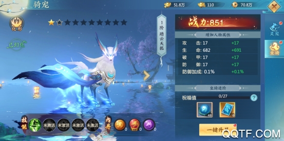 提升坐骑等级可以提升海量综合属性,激活坐骑外形还可以获得按百分比回复生命值的特殊技能,并获得专有的外形显示。