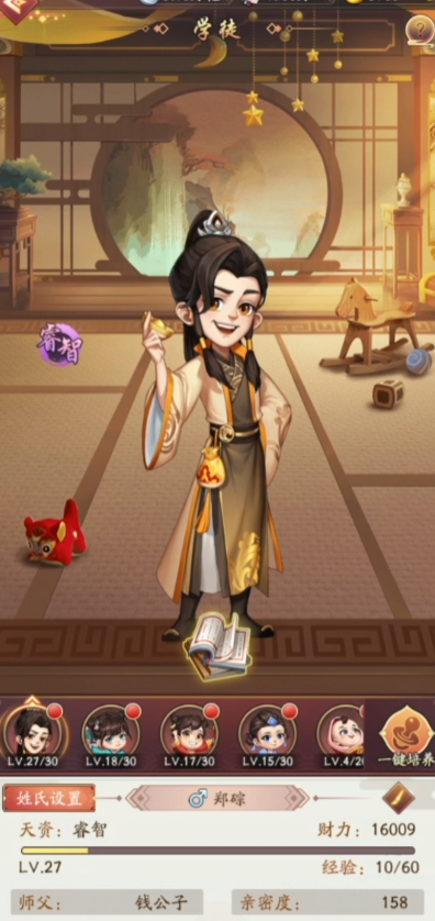 核心门客优先培养:建议新手主养唐僧(即“师傅”),其技能成长稳定。前期获得的资质券可用于提升其2–3星技能,同时元宝应优先用于解锁五个账房,提升整体收益效率。