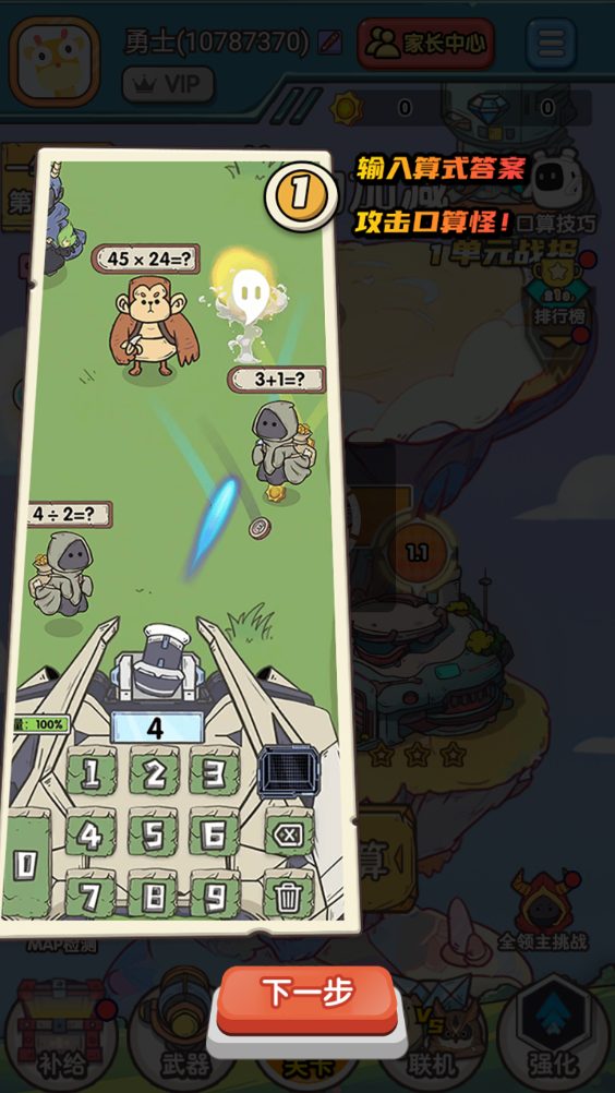 口算战争手游是一个用数值计算方法玩游戏的软件。通过游戏关卡的设计,可以更好的教会孩子练习口算,根据怪物对应的计算结果打败他们,提高了孩子的兴趣。也有一些学习计算技巧的好方法。