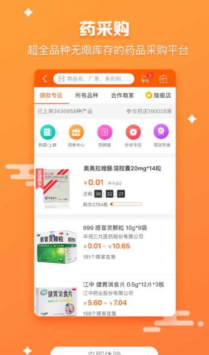 3、优惠可靠的药品采购平台。药师帮独家推出药品批发采购活动,累积采购量越大,最终采购价越低,由正规商业公司出货,质量有保证,轻松解决药店采购难题。