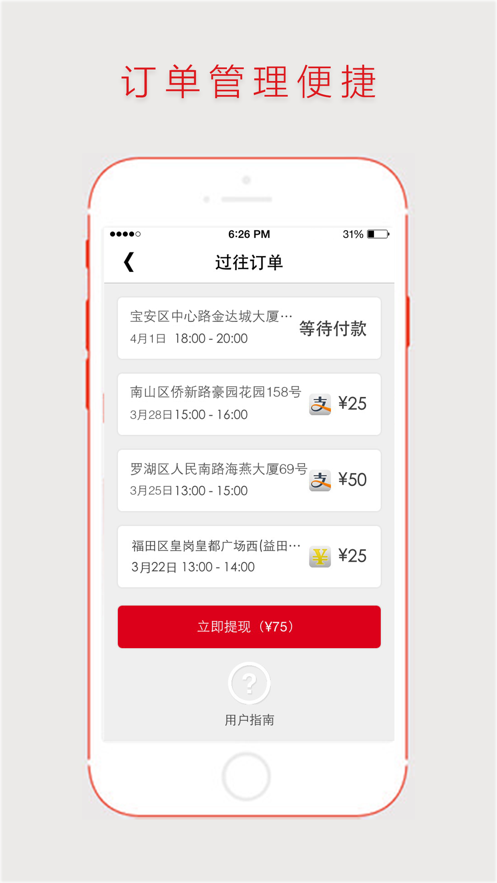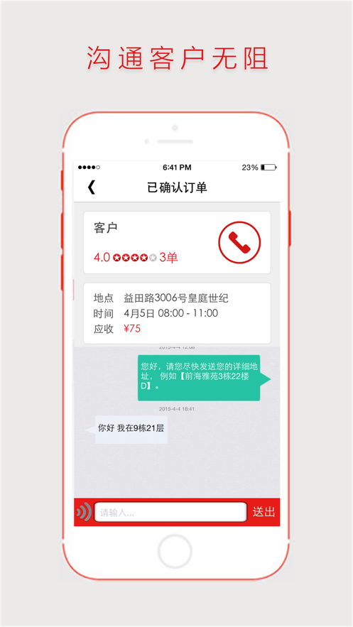 4.接单高效:顾客下单后1秒钟推送到位,告别从前苦等活儿来!