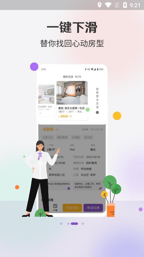 1.无忧约看惠省心:专属管家随时在线、全程陪伴、保障质量,租的放心,住的省心。