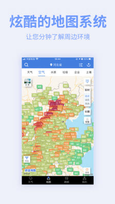 2、非常炫酷的地图系统,打开这个污染指数地图就可以看到全国各个城市的污染指数,让你能够通过地图了解污染情况