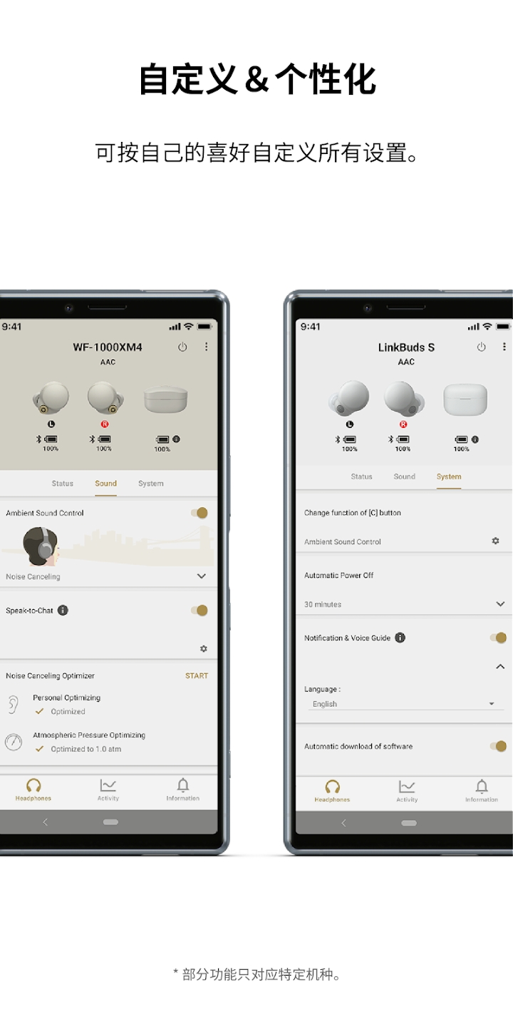 请根据您的喜好自定义搭载应用程序连接功能的Sony耳机。