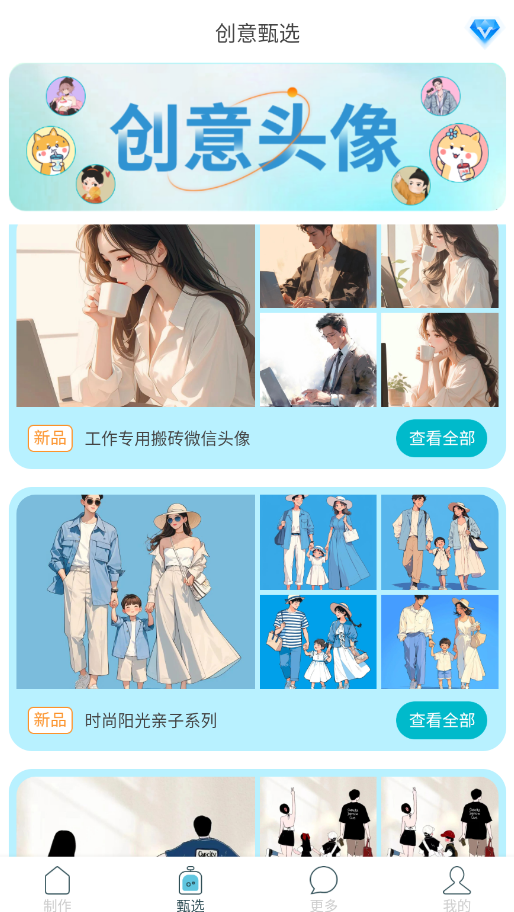 用户可一键套用模板快速生成心仪头像,也支持自由编辑与自定义创作,