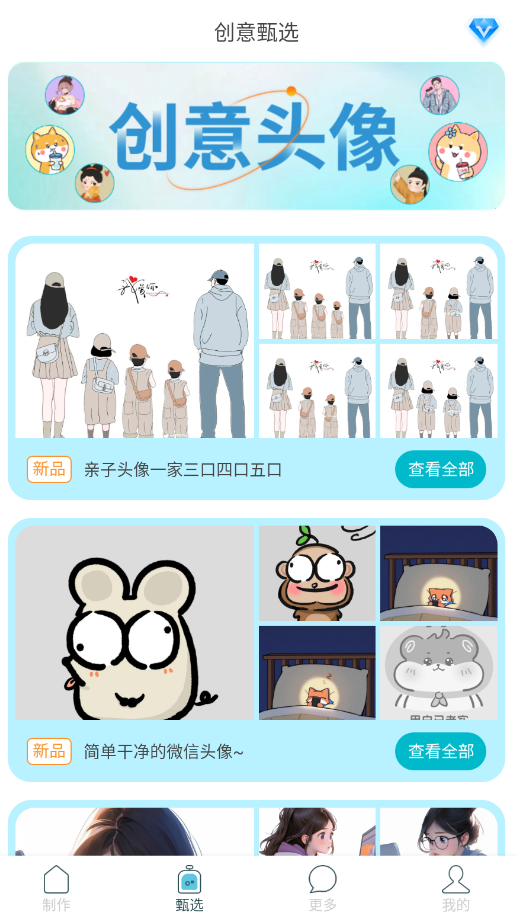 4.软件还内置海量风格各异的头像资源,涵盖潮流.可爱.复古.搞怪等多种类型。