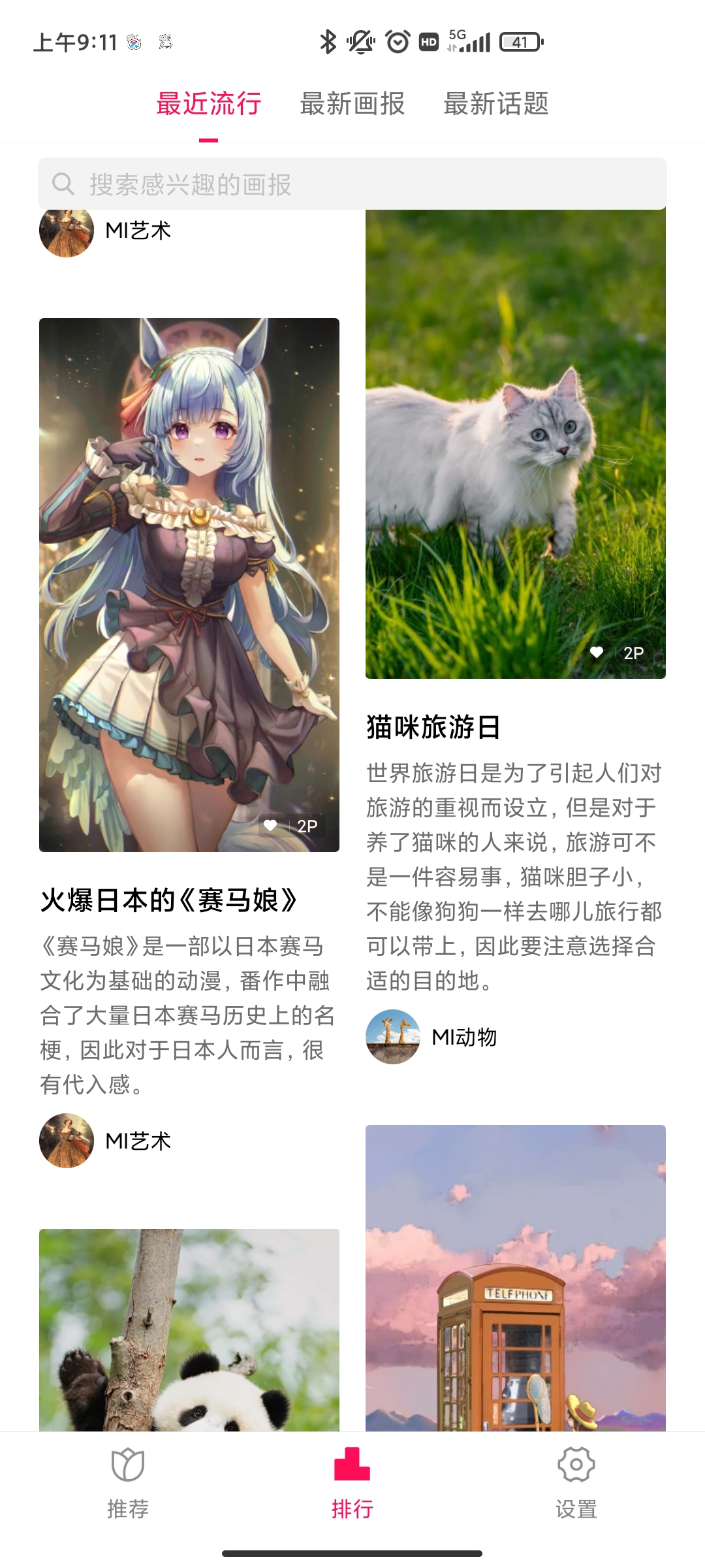 小米画报app最新版是小米手机自带的一个优质锁屏壁纸工具,在这里用户可以查看近期最流行的画报,精选高清图片,内容非常丰富,还有排行榜一目了然,有需要的小伙伴快来下载使用吧!