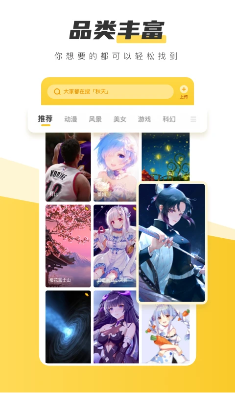 品类海量丰富:涵盖风景、动漫、明星等,想要的壁纸轻松找到。