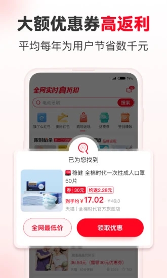 6.淘宝天猫优惠券一键搜索领取,心爱商品再也不用苦等降价~