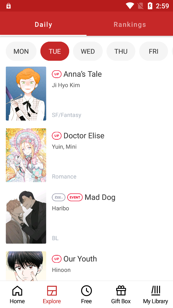 Lezhin Comics漫画最新版是一款免费好用的漫画软件,主要的是以日韩漫画为主,这里的漫画资源相当的丰富,各种类型的漫画都有能够满足大家的阅读需求,漫画更新的速度也是相当的快,各种漫画都是高清的没有任何内容的删减等,喜欢看日韩漫画的你赶紧来下载吧。