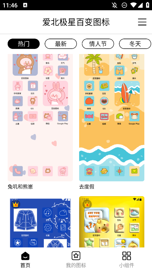 百变图标内置了大量精心设计的主题图标和配套壁纸,用户可以直接选择使用,快速改变手机桌面的整体风格。