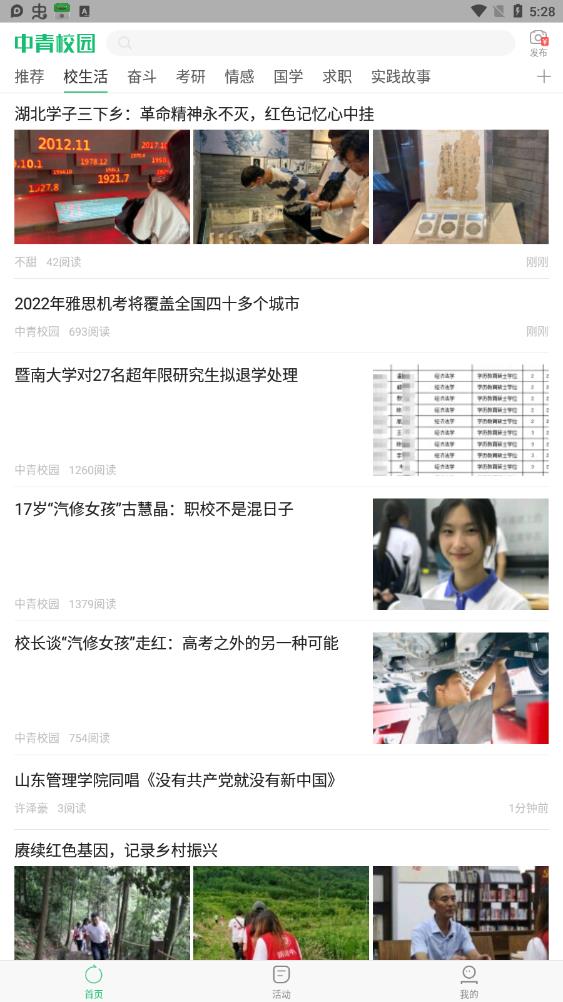 在这里您可以看到大学生感兴趣的、有话题的、涨知识的文章,让您感受不一样的体验。