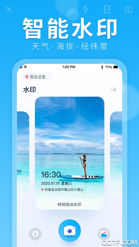 【水印相机】:选好水印、一键拍照,水印照片自动生成;水印相机样式丰富多彩,让你的照片更时尚,朋友圈更出彩;爱美爱自拍就用水印大师相机!