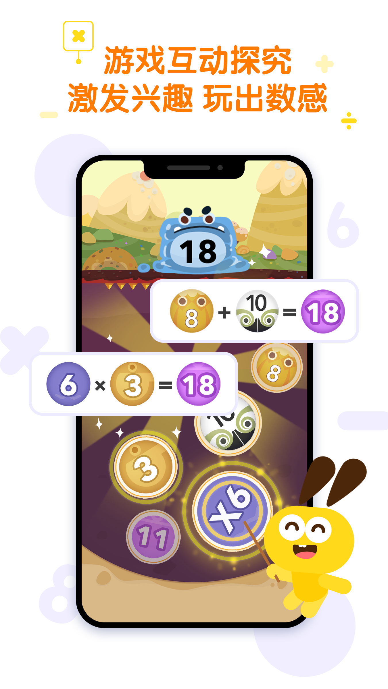 数感星球是一款创新型的游戏化数学学习App,专为小学阶段的孩子打造。将严谨的数学知识和趣味游戏相结合,为孩子构建一个多元的数学问题探索空间,循序渐进引导孩子主动解决问题,从而深刻理解抽象的数学原理,为数学学习打下稳固的基础。